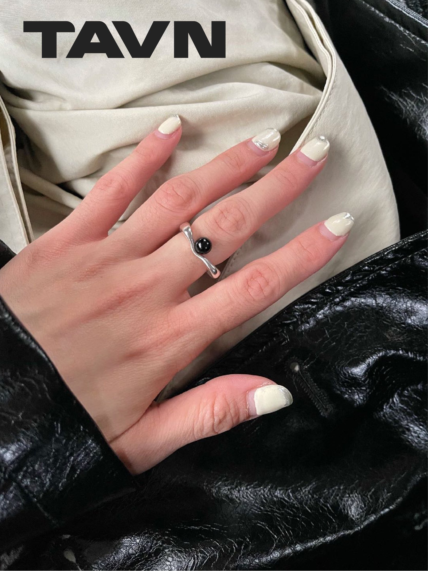 TAVN niche designer LELEMENTO floating silver metal black agate ring