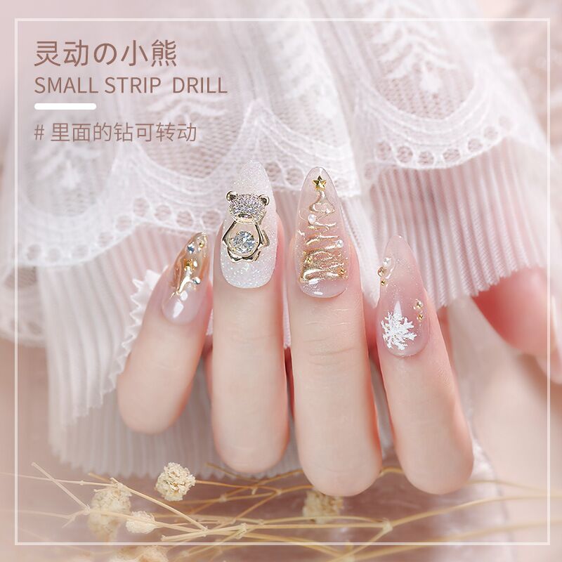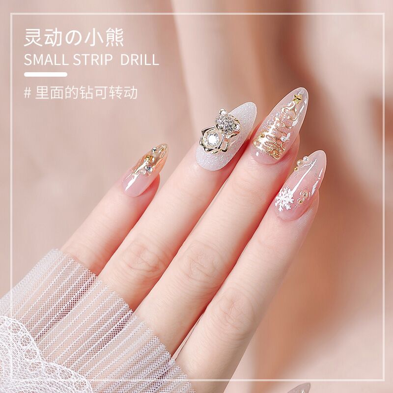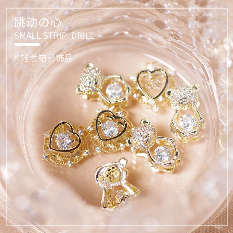 Explosion of nail ornaments beating heart zirconium spiritual bear super flash drill luxury diamond three-dimensional nail ornaments