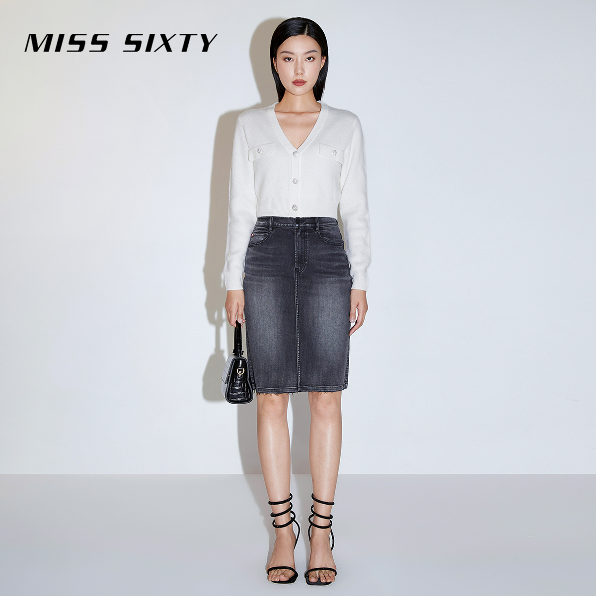(Fold on 2 pieces 9 fold) Bella Hadid the same paragraph] Miss. Sixty spring and autumn-knitted sweatshirt female V collar