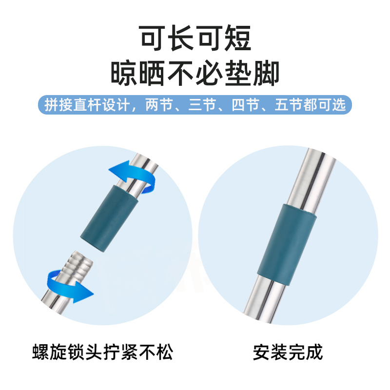 Support rod Household clothesline rod Stainless steel splicing rod extended drying clothes hanging clothes pick clothes pick clothes fork rod clothes fork