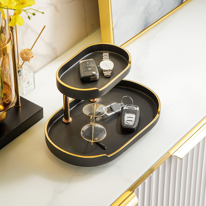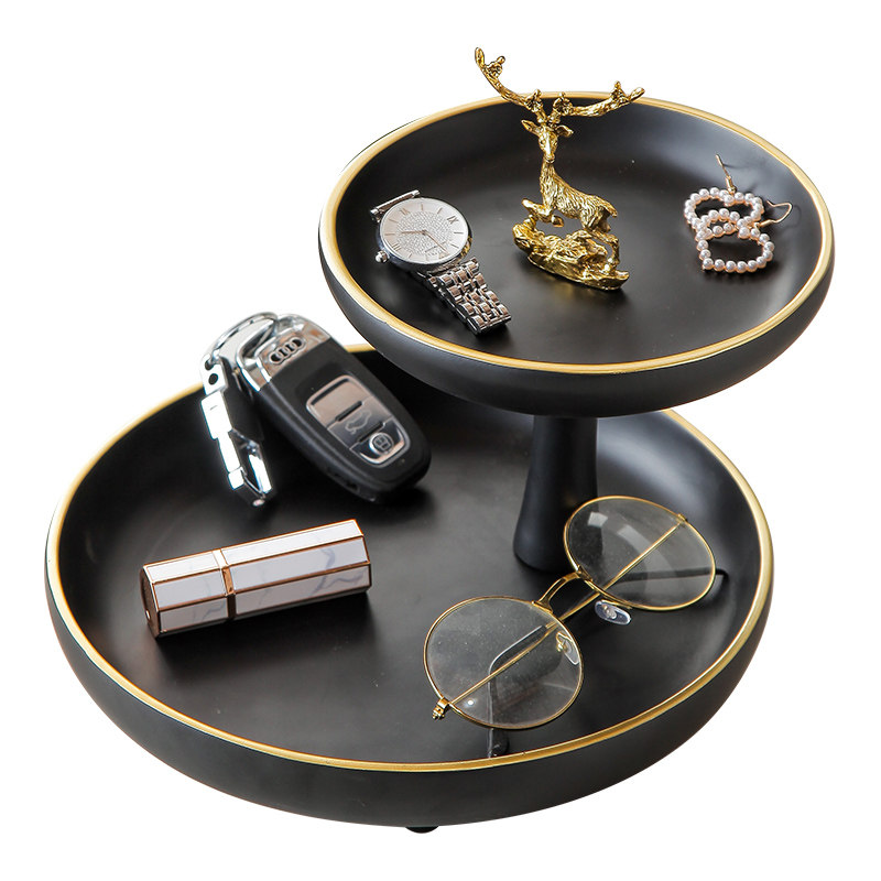 Deer head double-layer storage fruit plate-elegant black fashion simple storage D-Klein blue zp deer head cotton swab box zp deer head desktop four-piece set zp deer head five-piece desktop set fashion simple storage