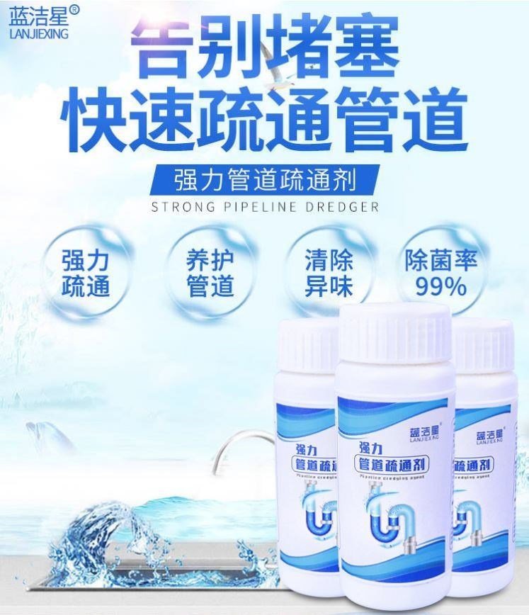 3 bottles of pipe dredging agent, powerful toilet artifact, toilet floor drain, kitchen sewer, oil stain decomposition, dissolution and blockage