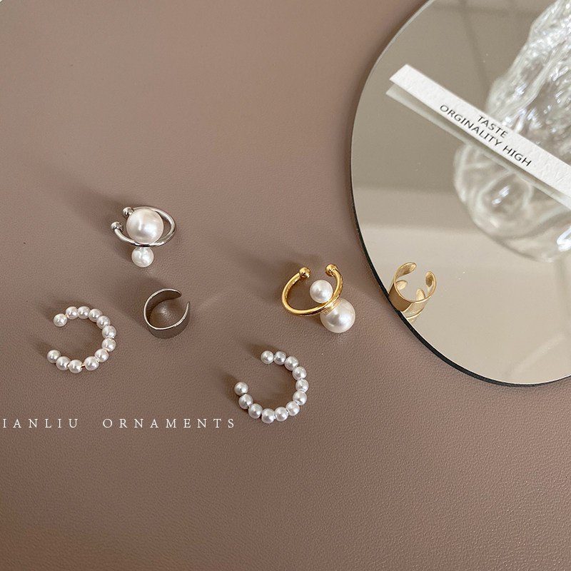 Vintage temperament pearl ear bone clip no ear piercing women's French premium sense set ear clip 2021 new trendy earrings