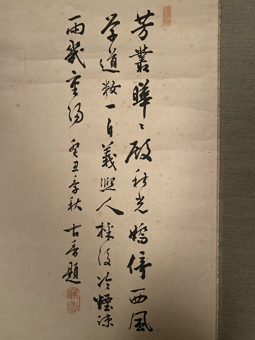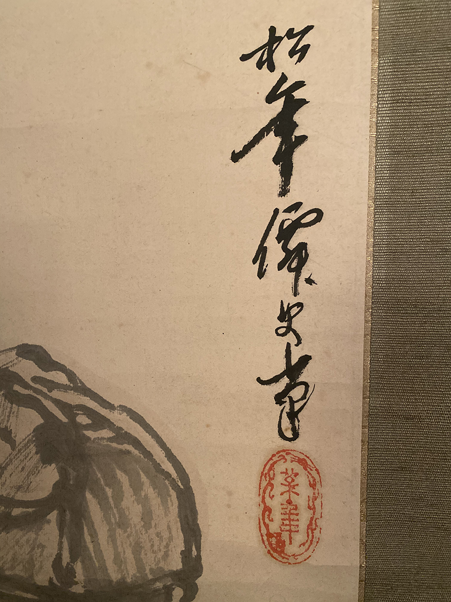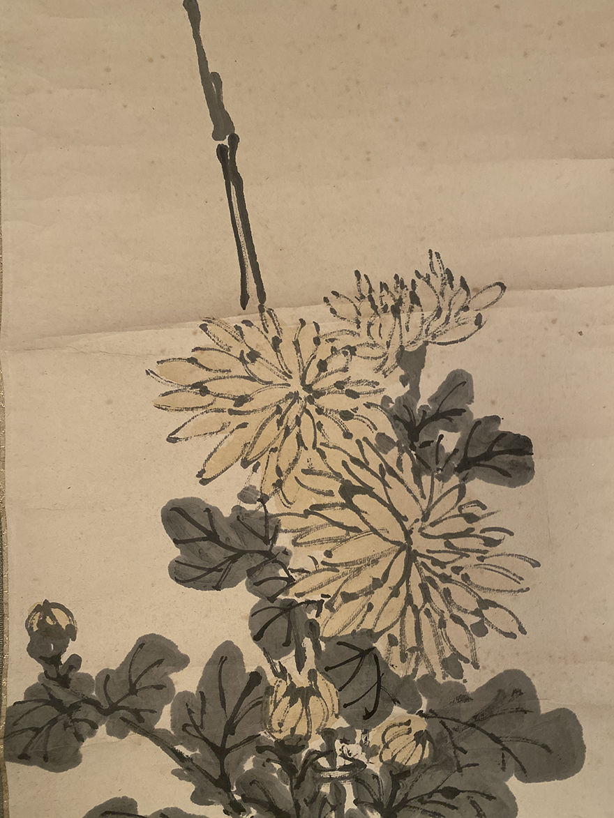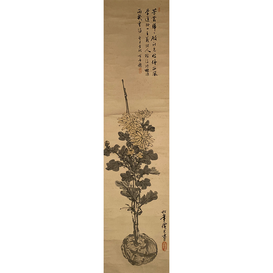 Interesting collection] Yuanshan Shijo School Famous Suzuki Pine Year Chrysanthemum Figure Mahogany Axle Head Original Original Mounting