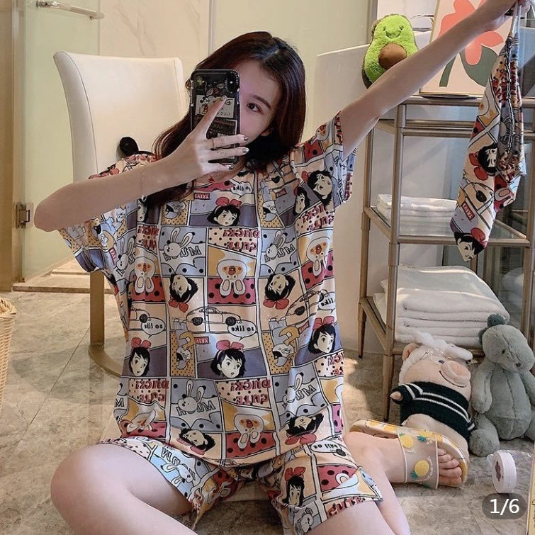 Pajamas women's summer new Korean version short-sleeved cute cartoon casual loose ins student ladies home clothes suit