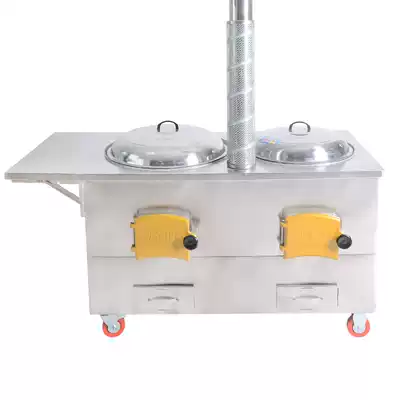 Firewood stove household firewood wood double pot stove indoor new energy-saving stainless steel movable belt Blower