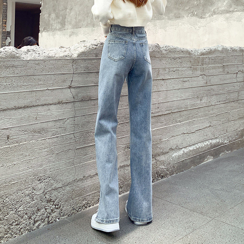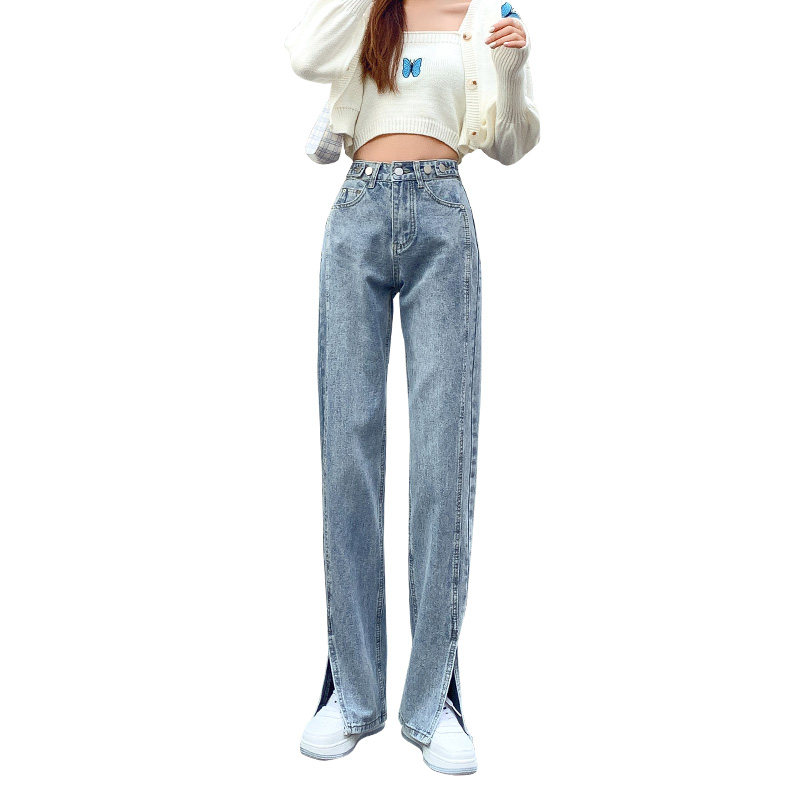 Straight Cylinder Open Fork Jeans Woman Thin section High waist Slim Loose Slim Loose small Broadlegged Pants 2022 Summer New