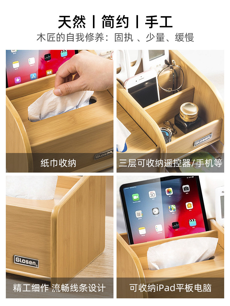 Remote control storage box home living room light luxury creative tissue box simple wooden key sundries draw paper box coffee table