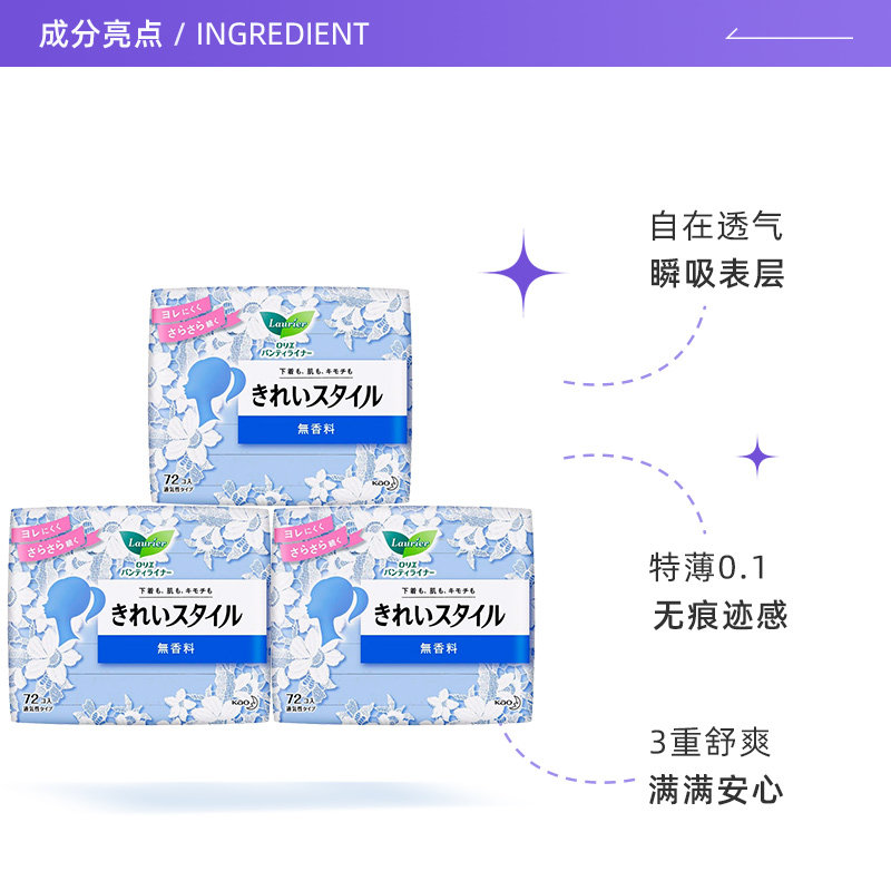 (self-employed) Japanese imports KAO Flower Wang Leong Elegant Sanitary Towel Breathable no fragrant panty liners 72 slices * 3 packs-Taobao