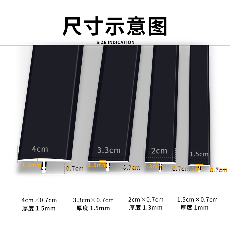 Aluminum alloy T-shaped wooden floor edge strip Pressure strip threshold strip Stainless steel metal black titanium alloy decorative T-shaped edge strip