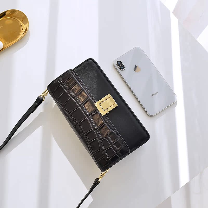 European and American fashion genuine leather skew satchel with female crocodile tattoo small square bag lock texture casual cow leather single shoulder female bag damp