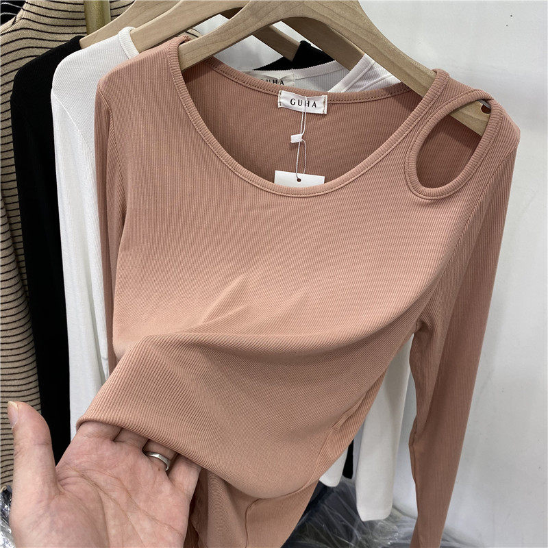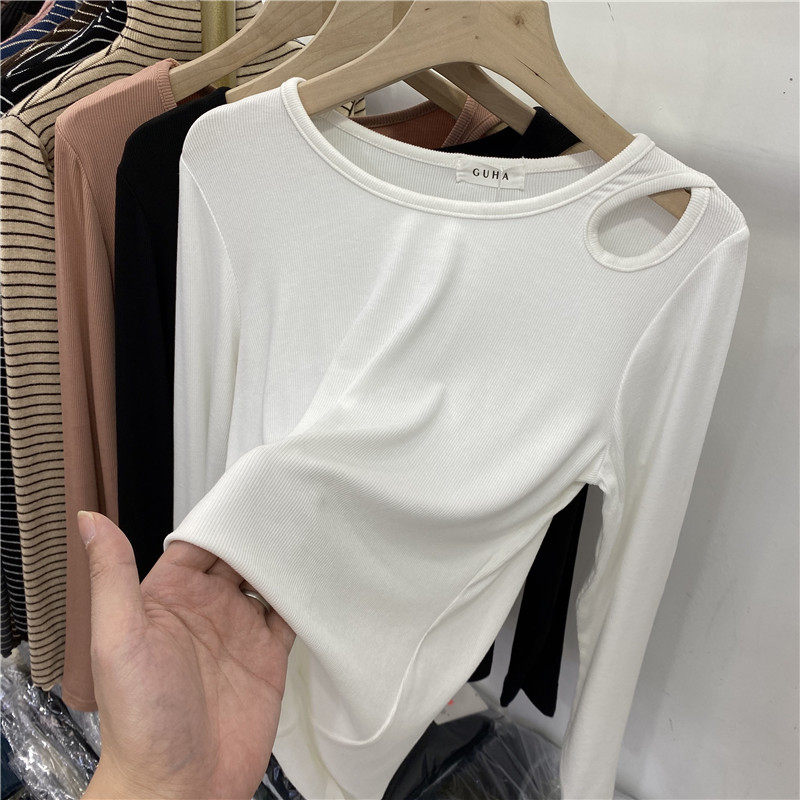 European round neck hollow shoulder long sleeve T-shirt women's 2022 spring new interior bottoming shirt foreign style small shirt top