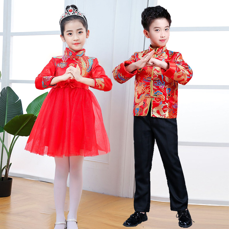 Children's New Year's greetings costume Tang suit Hanfu boys and girls New Year's one-year-old dress New Year's Day Chinese style festive performance costume winter suit