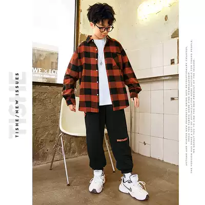 Boys' plaid shirt thin coat Spring and Autumn long sleeve coat medium and large children's clothing new cotton loose coat tide