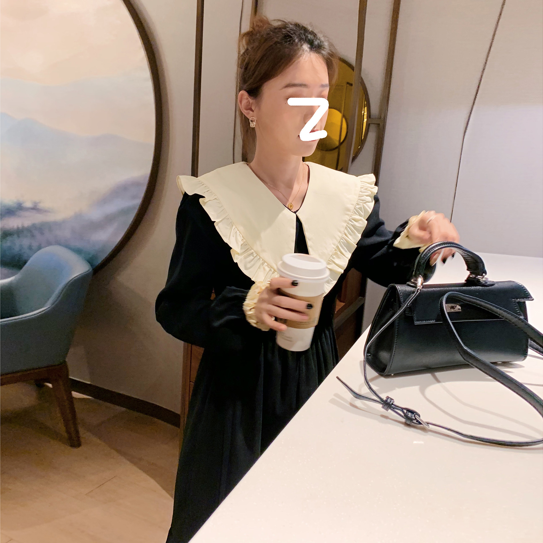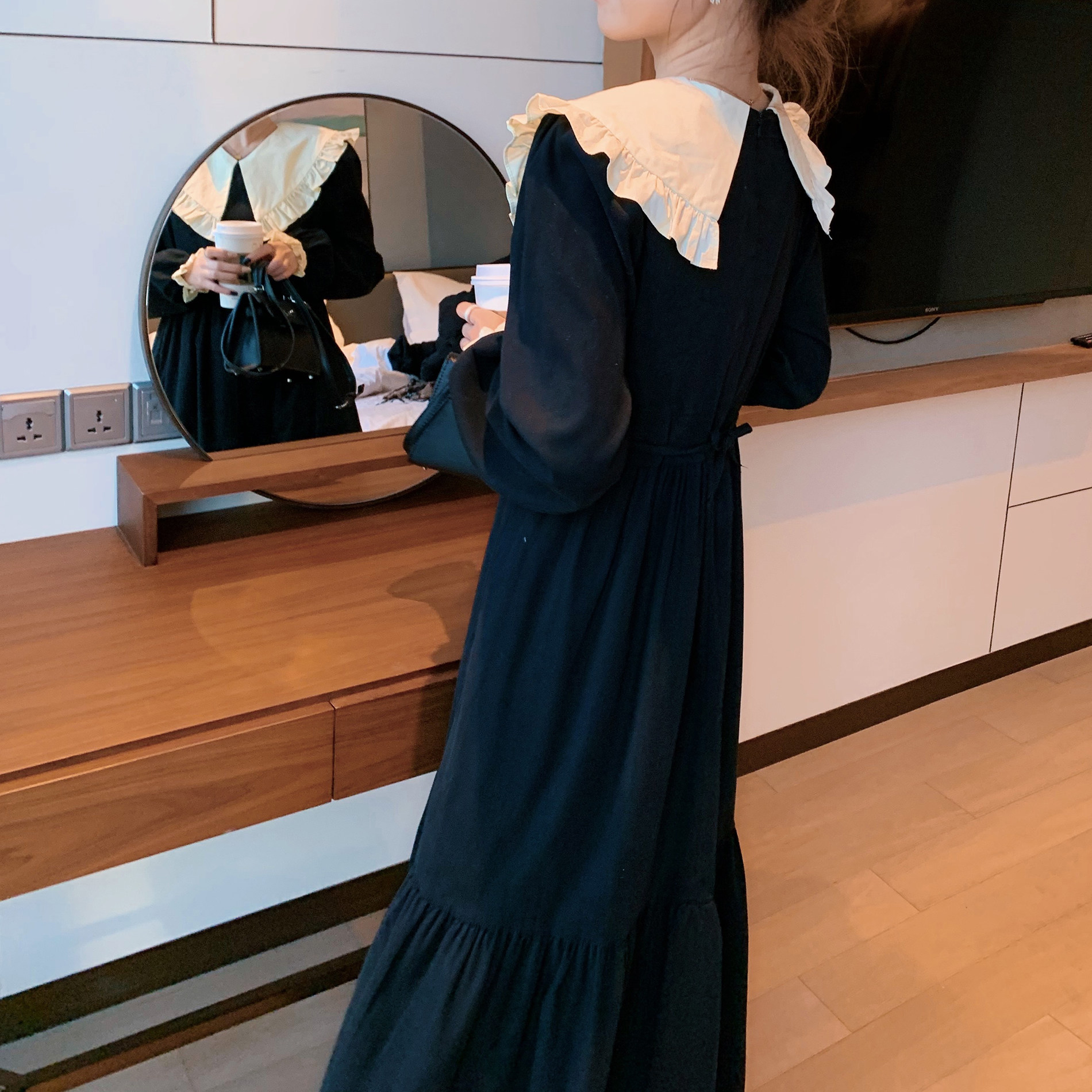Doll collar slim fit women 2022 spring new French style retro temperament Long sleeves Herbenwind black dresses