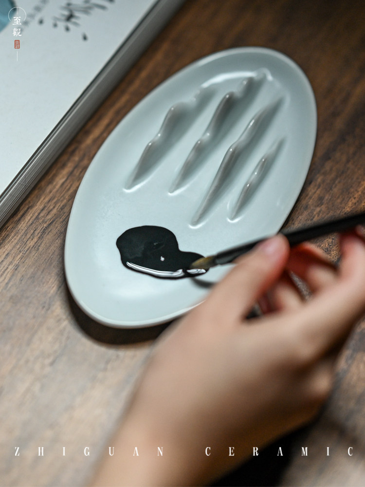 Zhiguan multi-functional ceramic calligraphy small ink plate ink sea ink plate ink pool pen licking lower case special study four treasures