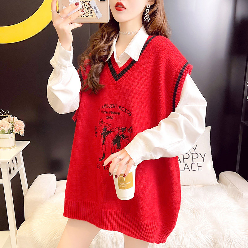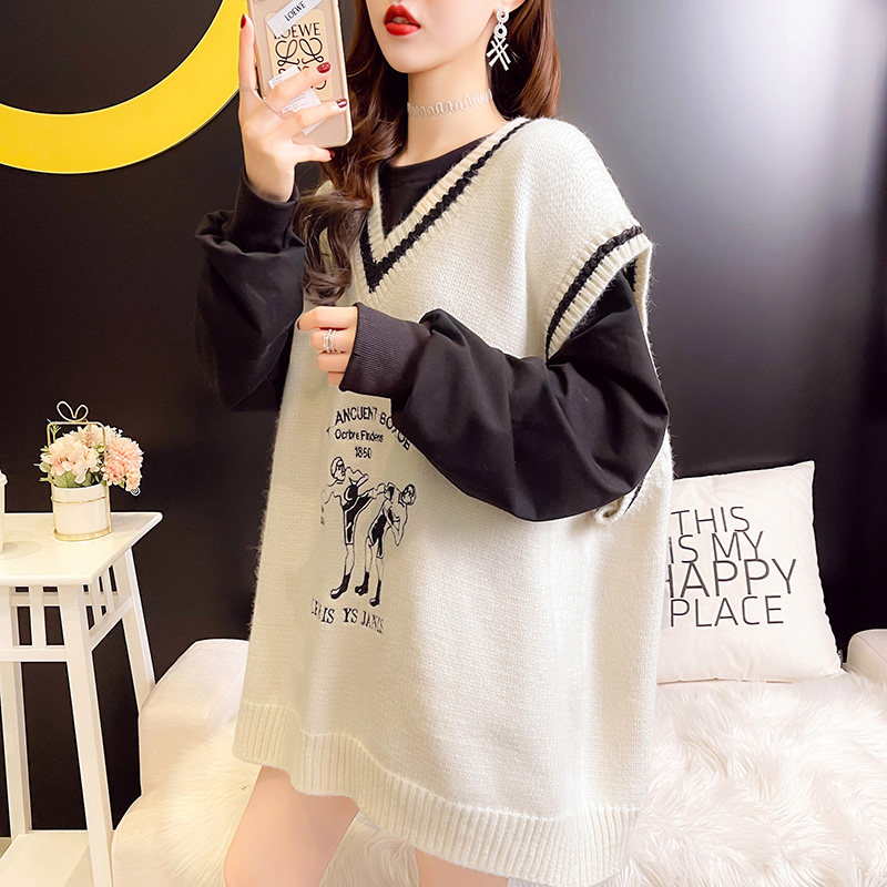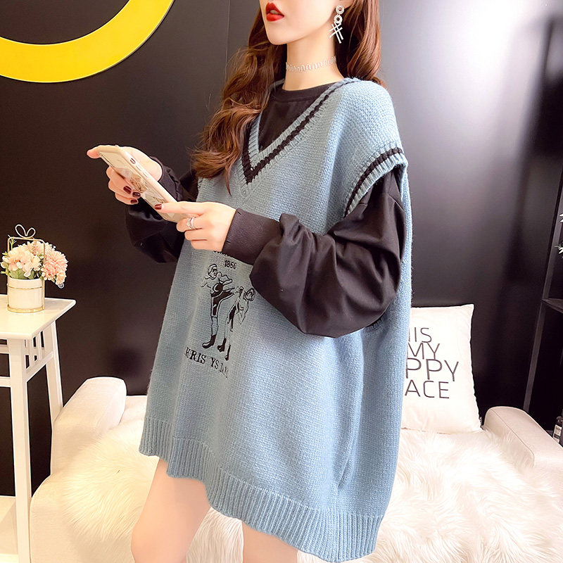 Knitted waistcoat 2021 Spring paragraph Han version Leisure Loose Vest outside wearing sleeveless sweater with long version of headsets waistcoat