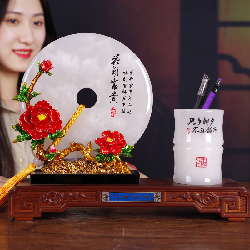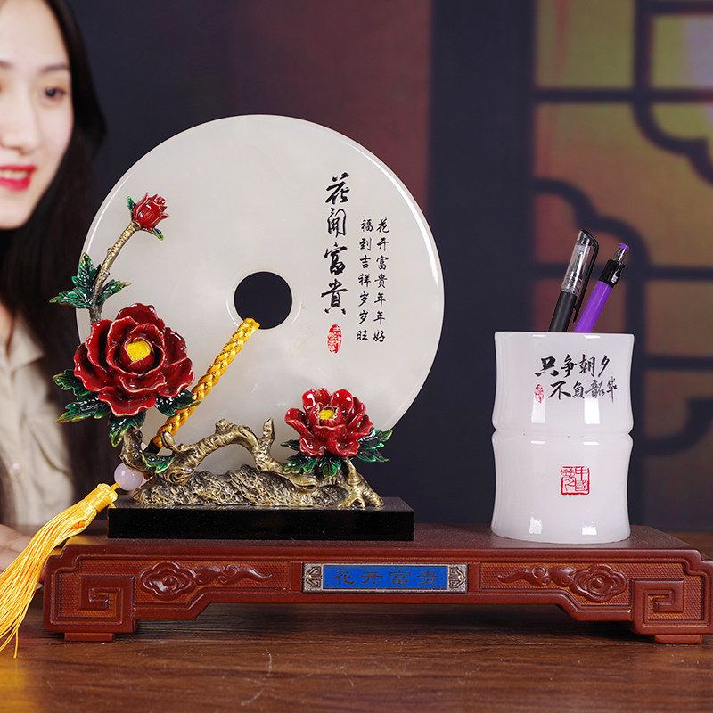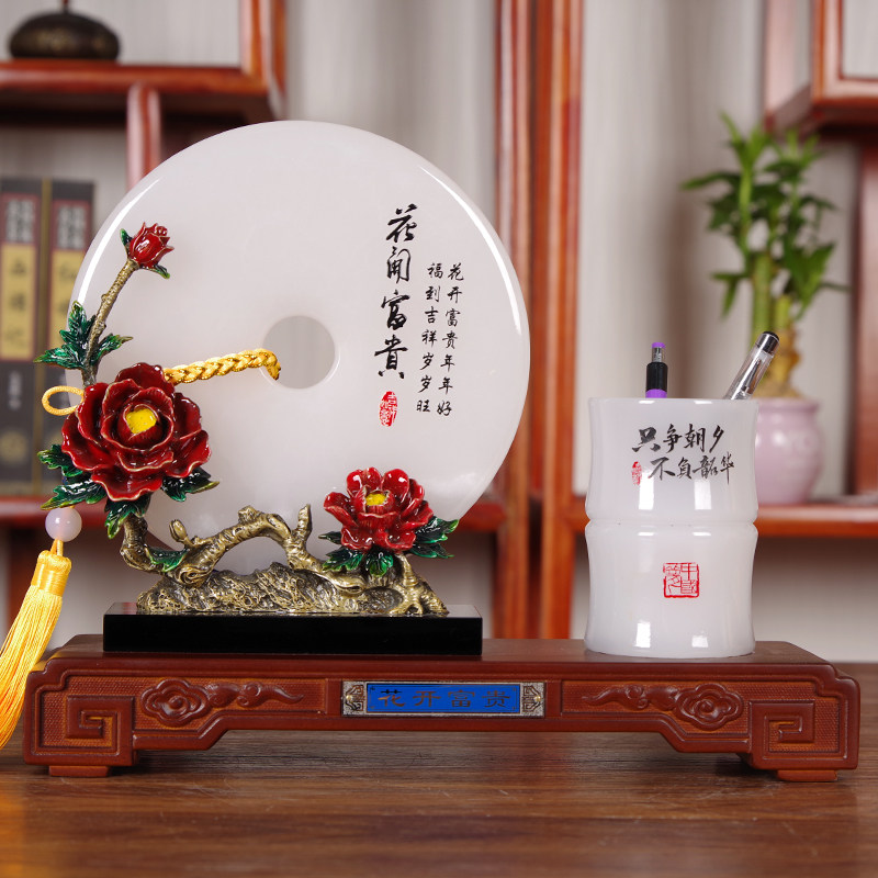 A1 paragraph-flower open rich and safe button pen holder (alloy enamel color ancient gold bracket) gift box with A2 paragraph-flower open rich and expensive green button pen holder (alloy enamel color ancient bronze color bracket) gift box dress