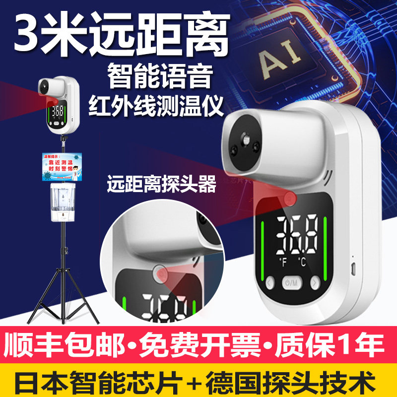 Long-distance infrared automatic thermometer door vertical type people forbidden high-precision voice temperature measuring instrument integrated machine