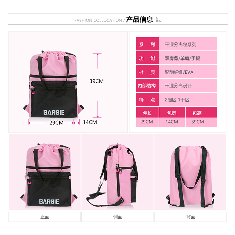 Barbie dry and wet separation bag female storage bag beach bag hot spring equipment fitness backpack waterproof swimming bag