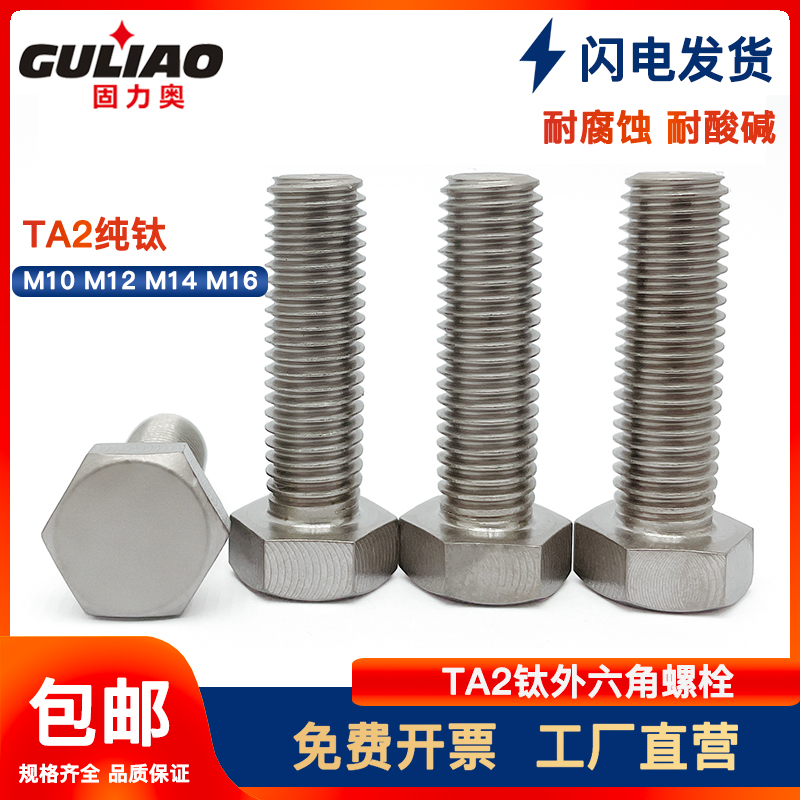 M10M12M14M16 titanium screw titanium alloy screw TA2 pure titanium outer hexagonal bolt Gr2 titanium outer hexagonal screw