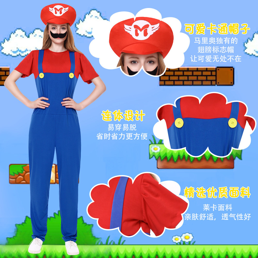 Halloween Adult Cosplay Mario Masquerade dress up costume Super Mario show Baby bag pants
