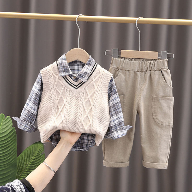 Three-piece set of patterned vests