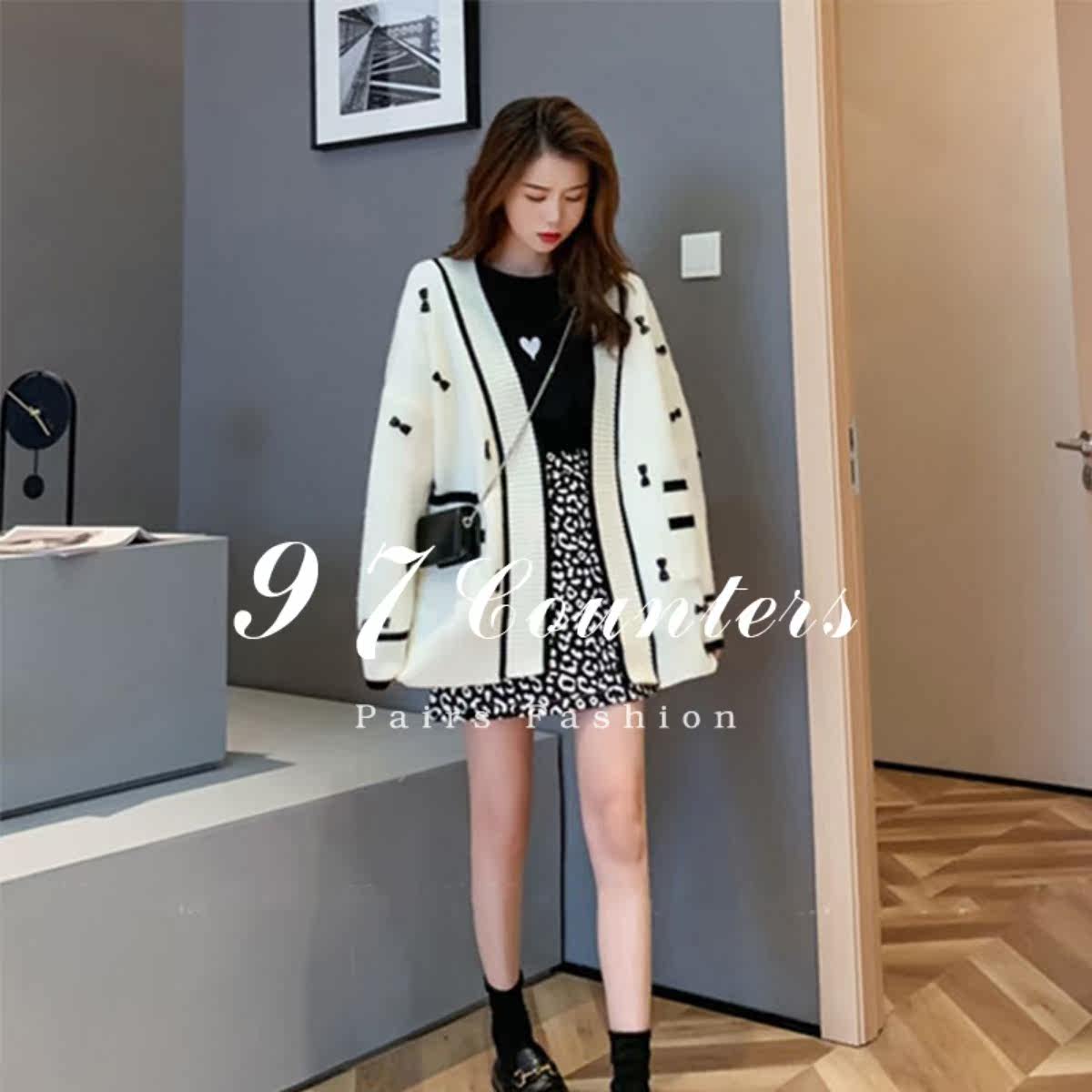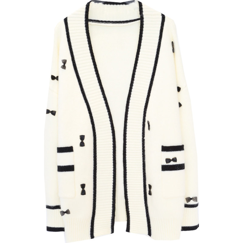 sandro asw knitted cardigan women's 2022 spring new Korean version of the Western style loose bow V-neck sweater jacket