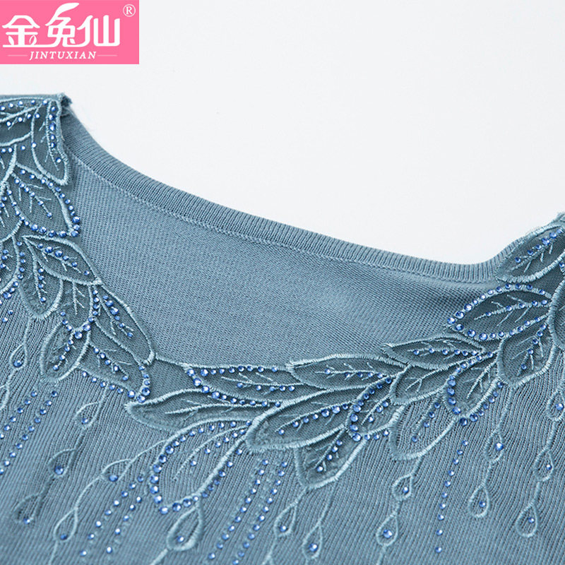 Middle Aged Mother Early Spring Autumn Clothing Blouse 2021 New Middle Aged Female Foreign Pie Quality Noble Knit Undershirt Thin