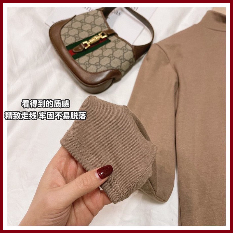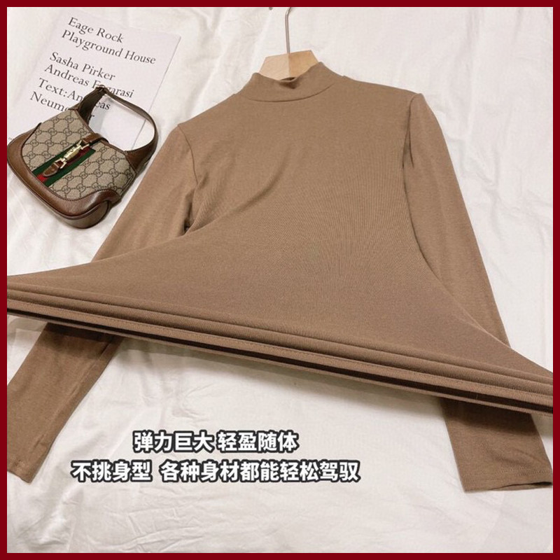Dongdaemun light luxury clothing autumn and winter half-high collar long-sleeved all-match t-shirt slimming solid color inner bottoming shirt ladies tops