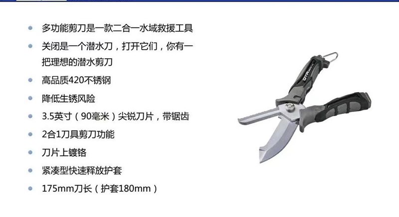 Dive scissors Dive equipment accessories cutting net life - saving line tool tip round head dive knife camping