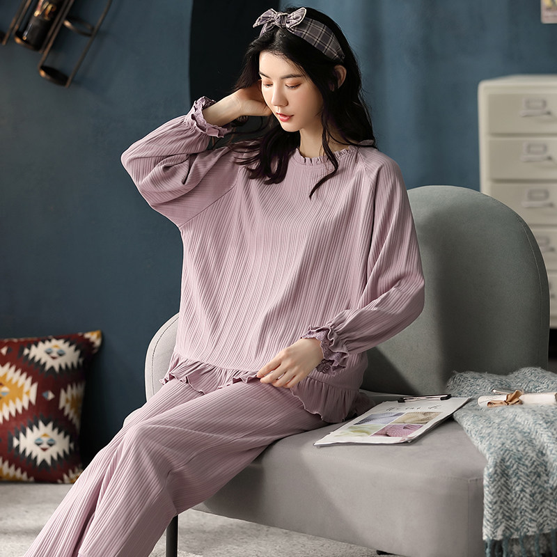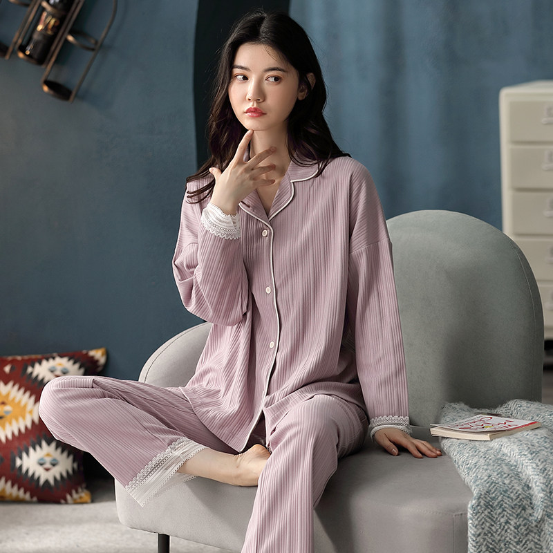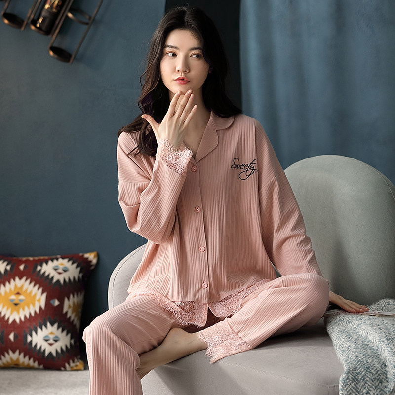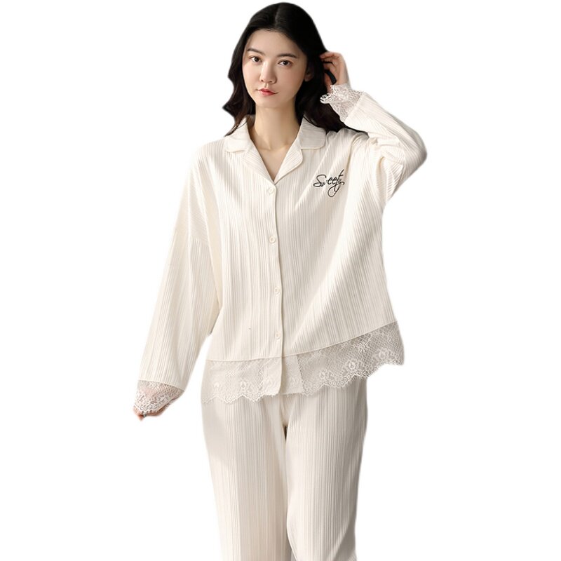 Very Fairy Sleepwear Foreign Pie Minus Age Spring Autumn Pure Cotton Long Sleeve White Lace White Lace Home Lady Suit New Tide