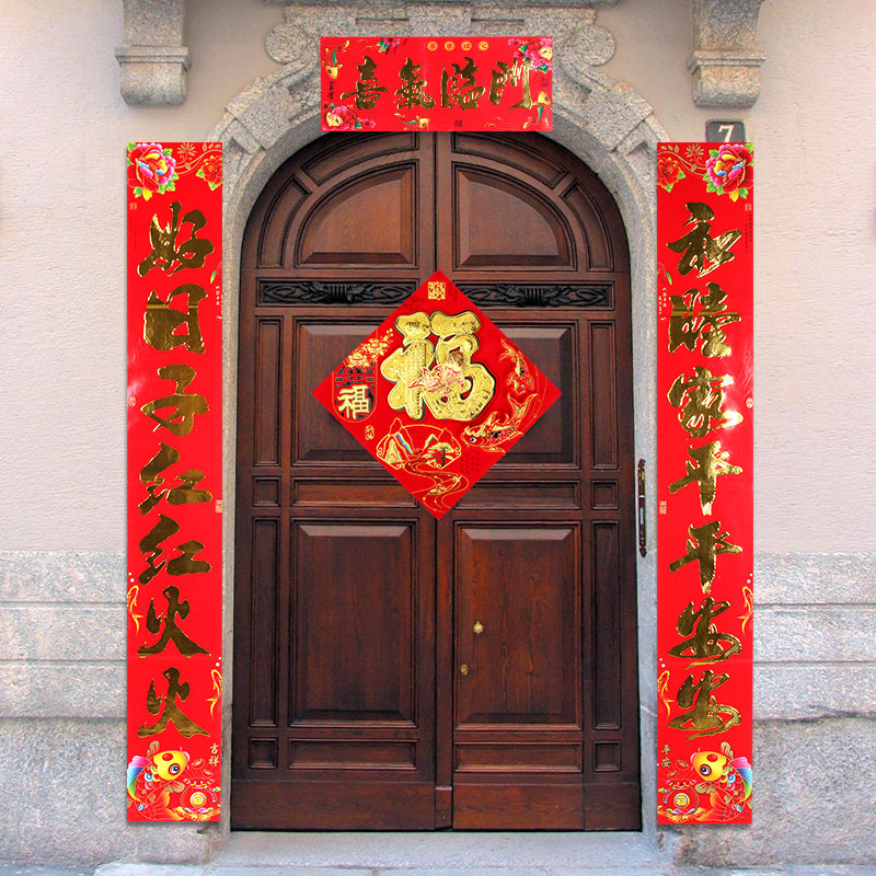 Year of the Rabbit New Year Copper Plate Gold Words Couplet Gate Spring Festival couplet bronzing embossed New Year painting door stickers 1 3 meters 1 6 meters 2 2 meters