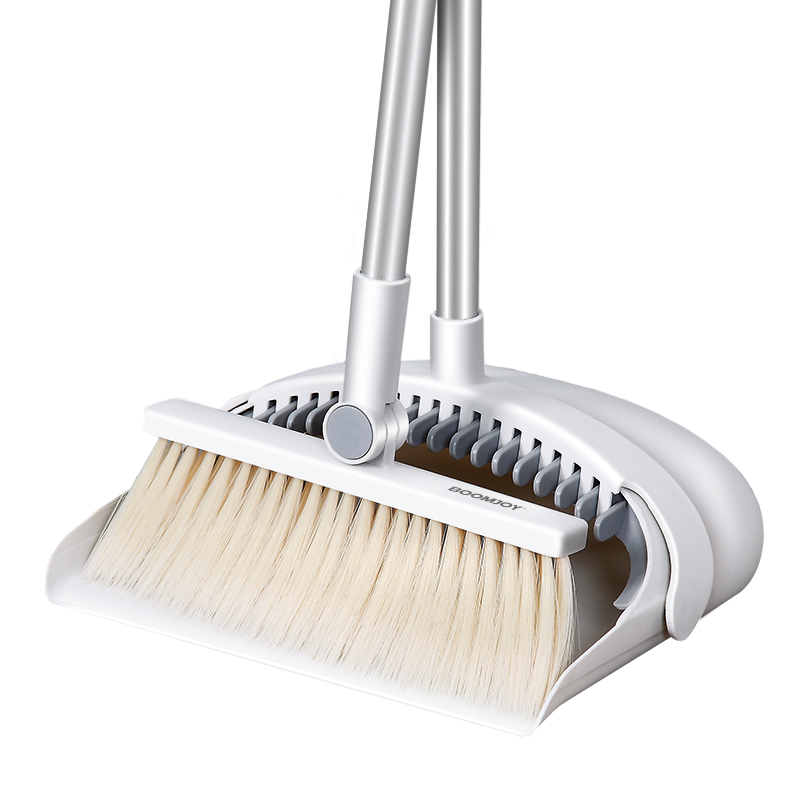 Simple white (double layer Luban tooth dustpan) broom + dustpan two-piece set