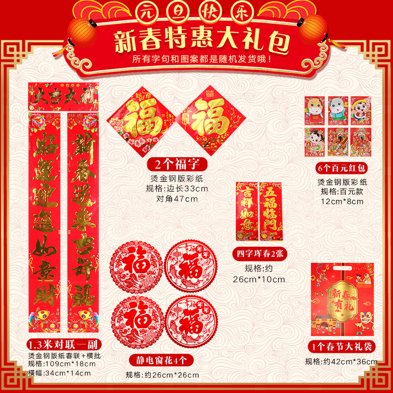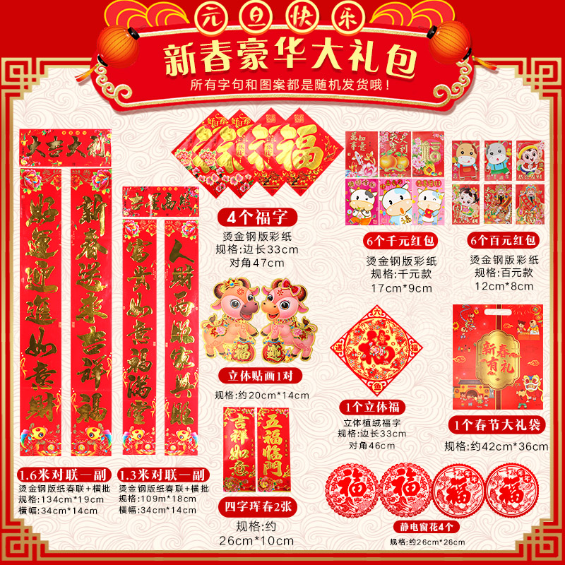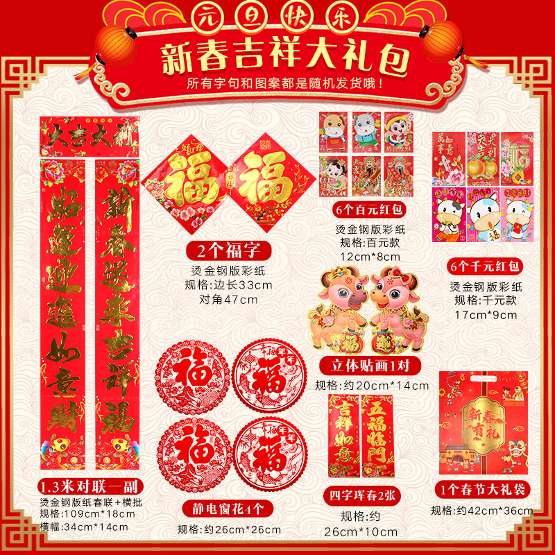 2021 Year of the Ox couplets Spring Festival package gift package home New Year's gate hanging couplet blessing word stickers zodiac couplet decoration