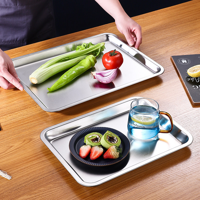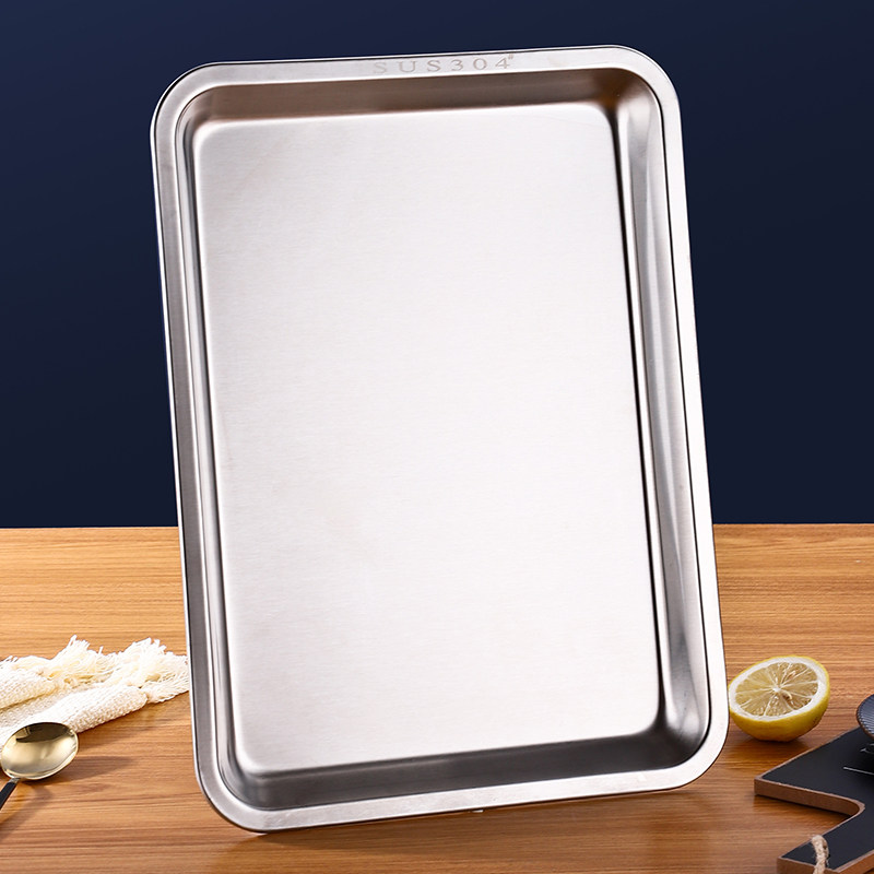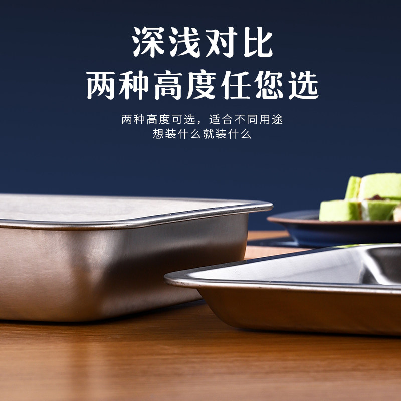 Special Thickness 304 Food Grade Stainless Steel Flat Chassis Deepen Brine Square Pan Baking Pan Baking Tray Commercial Steam Dinner Plate