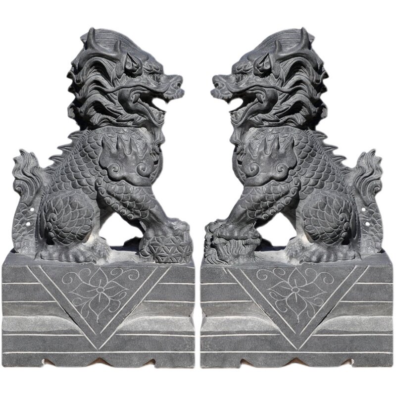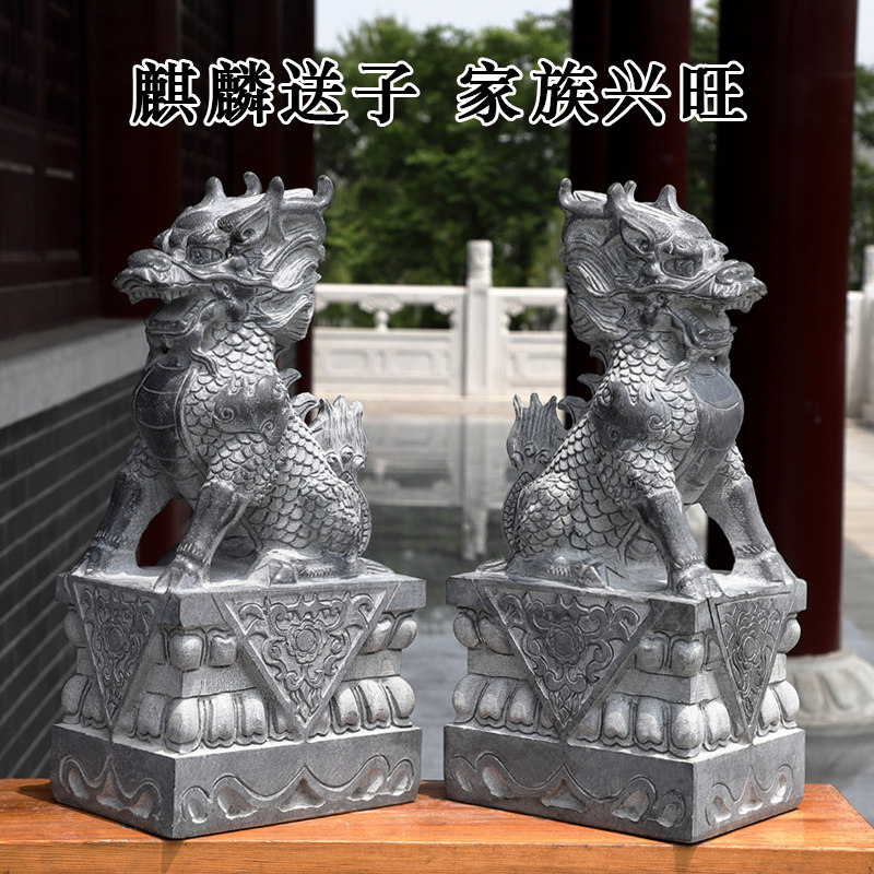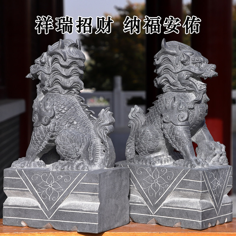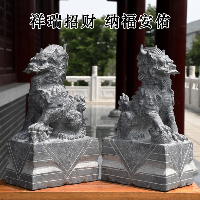 Stone carving unicorn pair of courtyard company home door town house lucky ornaments bluestone stone carving unicorn