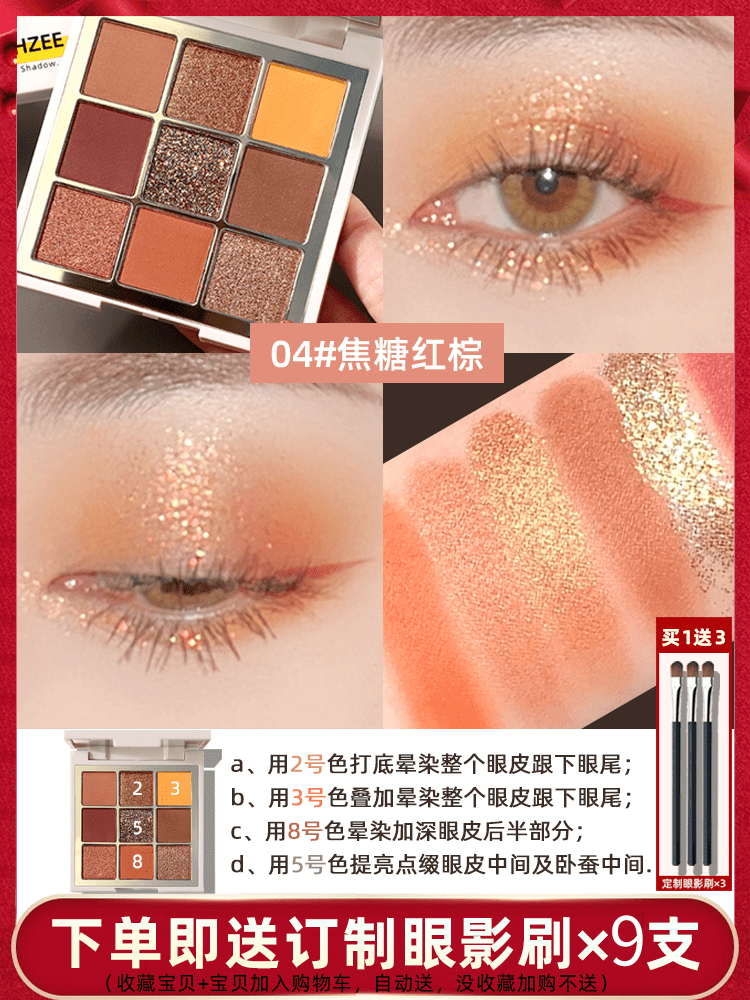 Nine-color eyeshadow palette ins super fire earth color waterproof and sweat-proof parity beginner niche pearlescent matte glitter powder
