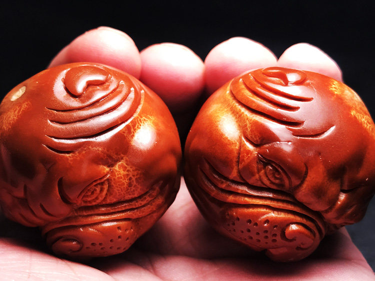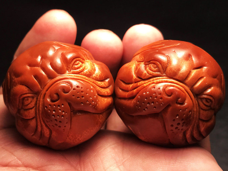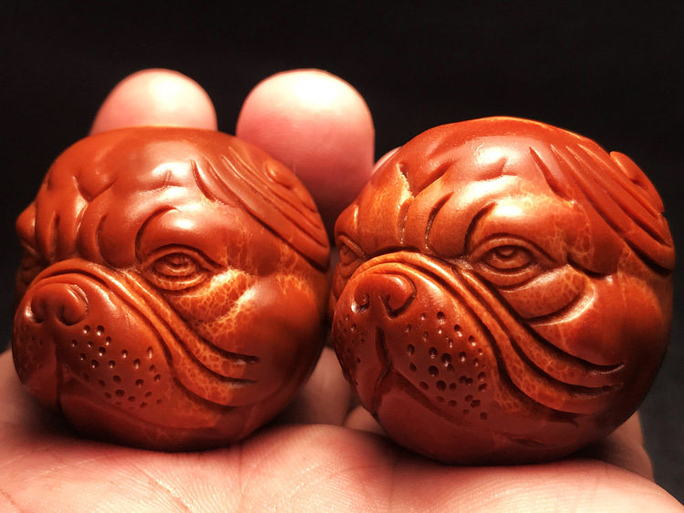 Cute Shar Pei dog Wangcai imported large seed olive core carving text play health care body ball handball men's plate play gift