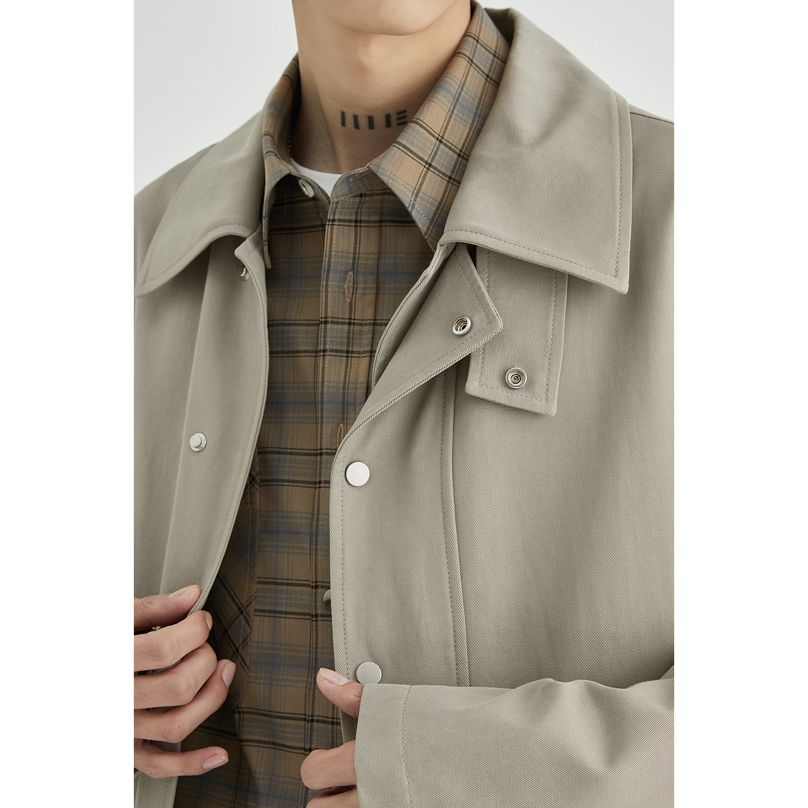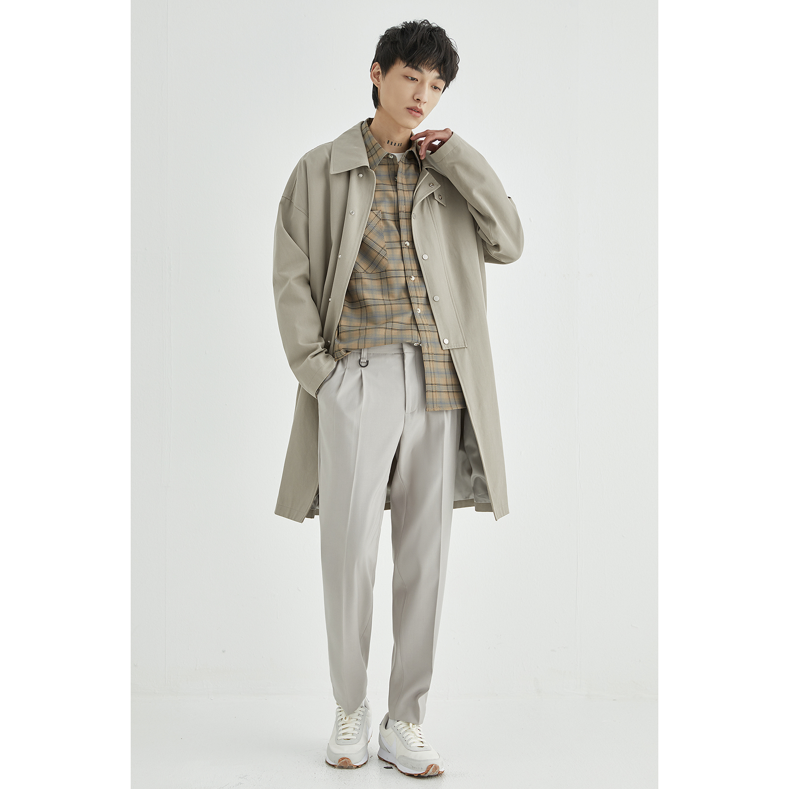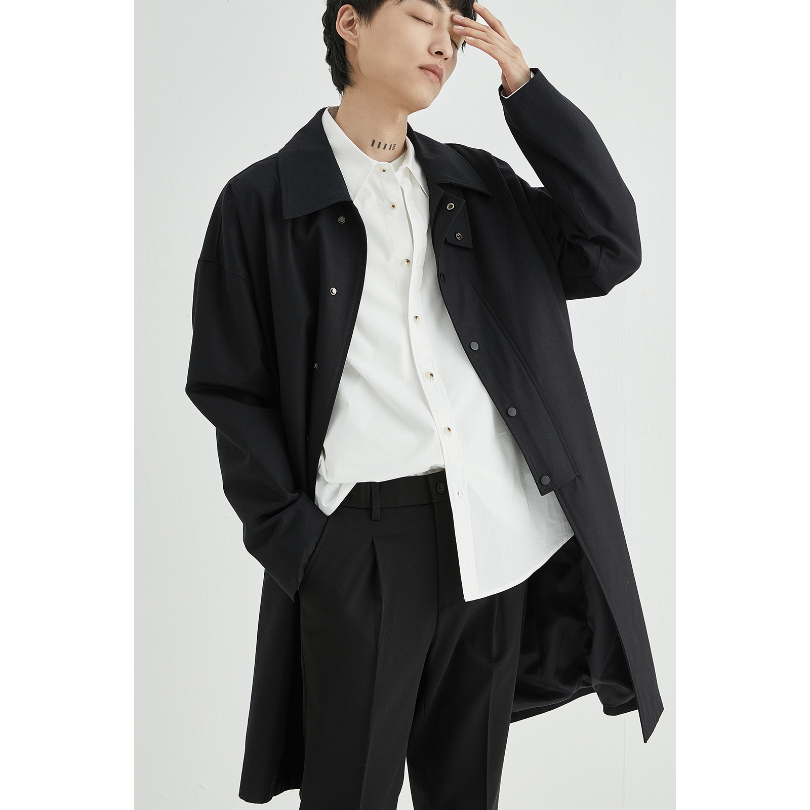 (Chu Ge) Tencel trench coat men's mid-length Japanese loose handsome coat spring men's lapel off-the-shoulder coat