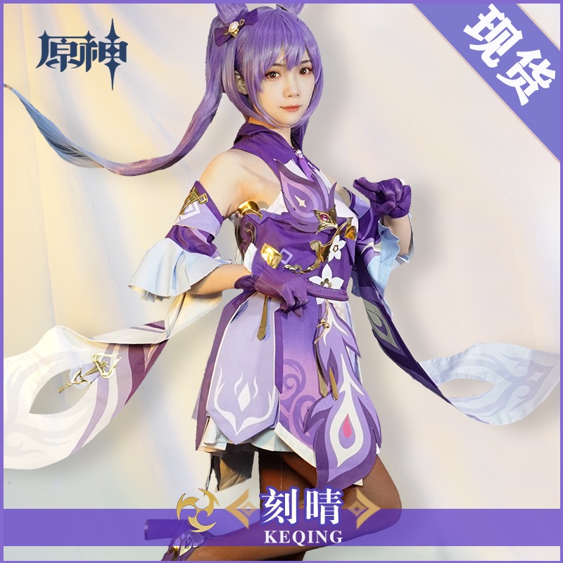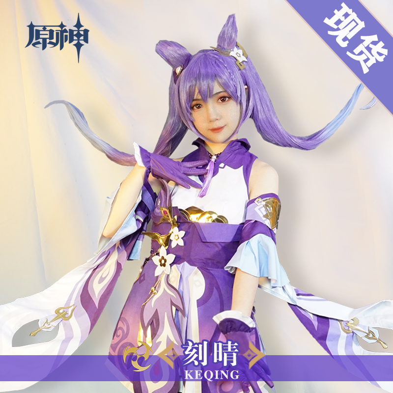 Keqing full set of Keqing wigs, Keqing shoes (remark size), Keqing panties (one size fits all), Keqing pantyhose, stockings, Keqing props, sword standing painting, 110cm wooden carving, cold blade, 105cm wooden