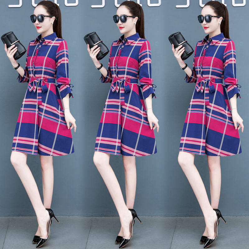 Long sleeved dress girl 2023 new spring wear appears thin and large waist - bottom - up long A - letter skirt