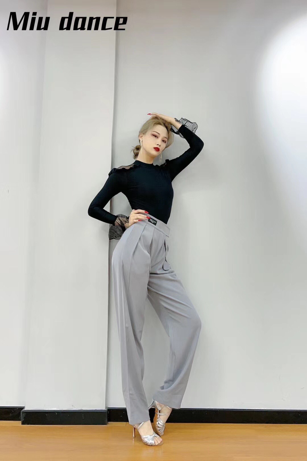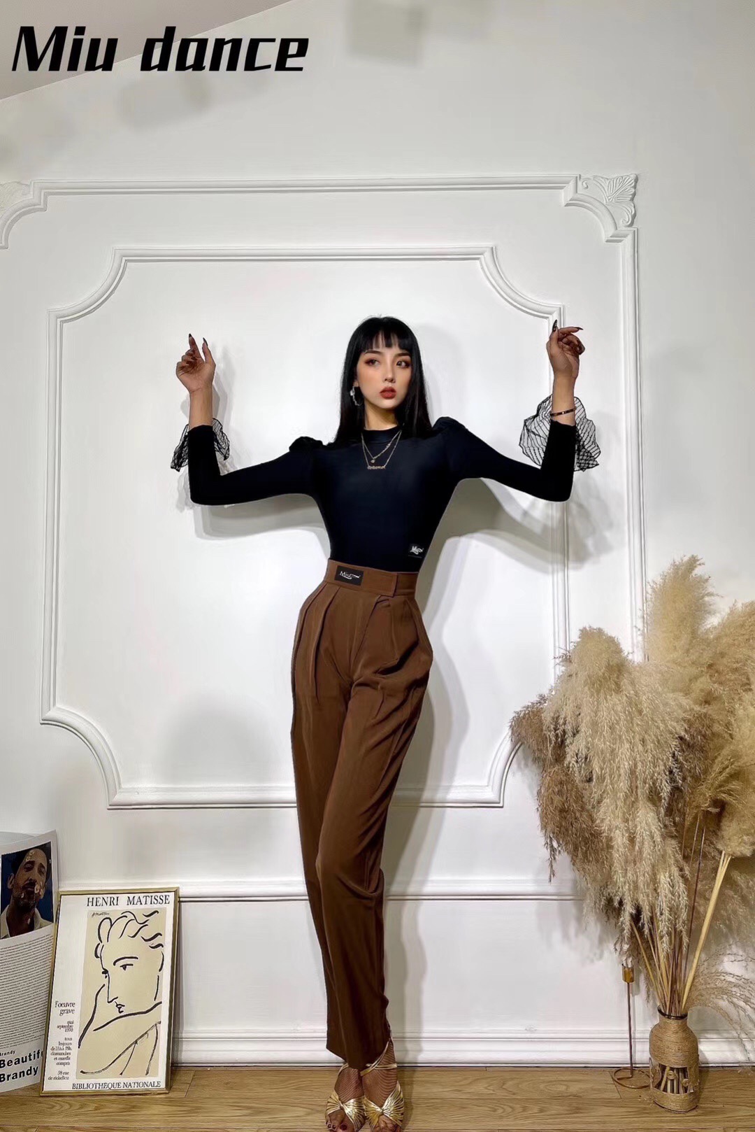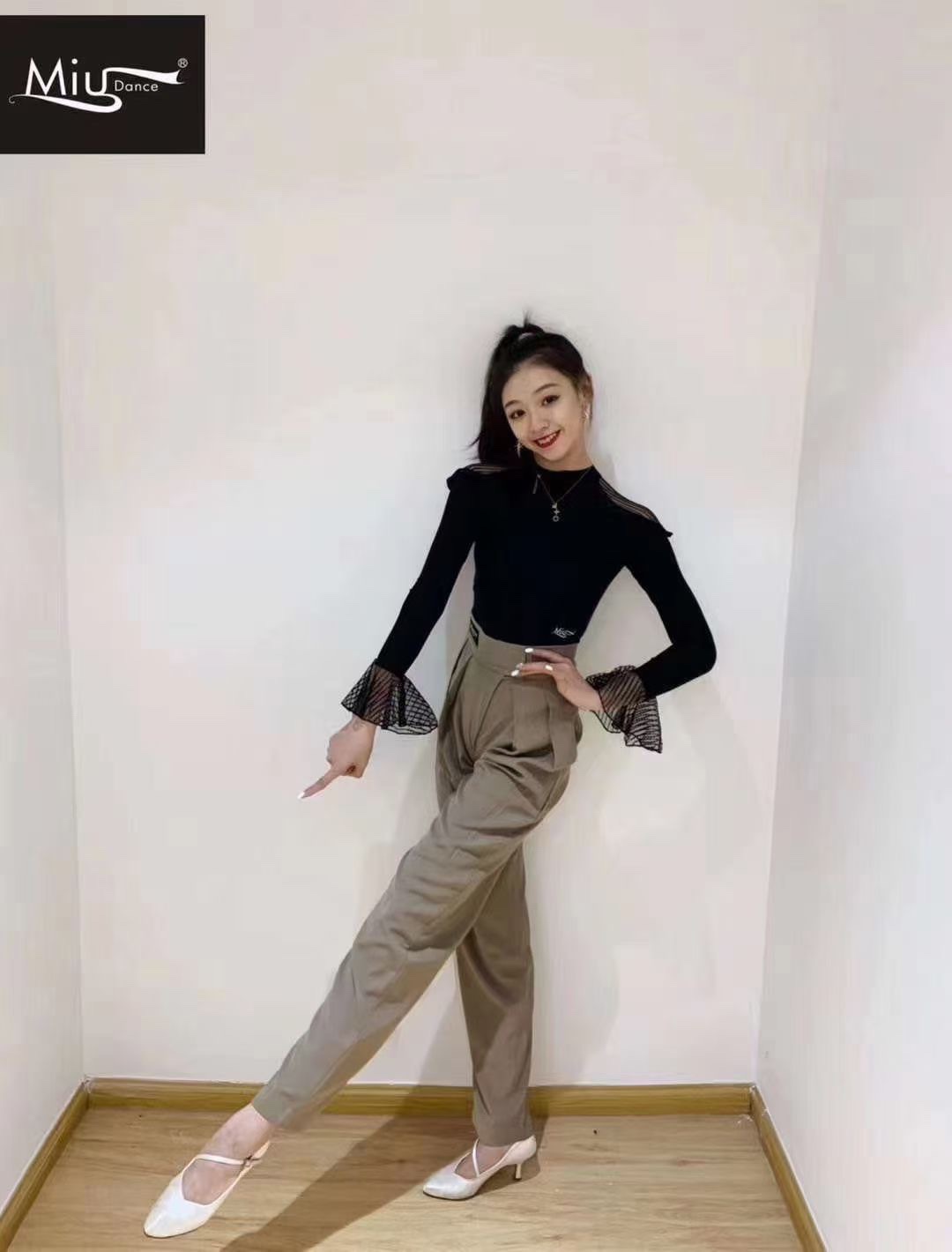 Miu 063 Latin modern exercise pants velcro design adjustable size slim legs long straight pants