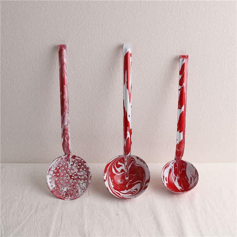 Impression Enamel Exported to the United States Red Marble Kitchen Three Piece Set Ornament Miscellaneous Goods Spoon Fittings Pendant