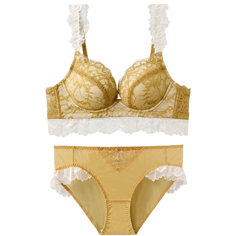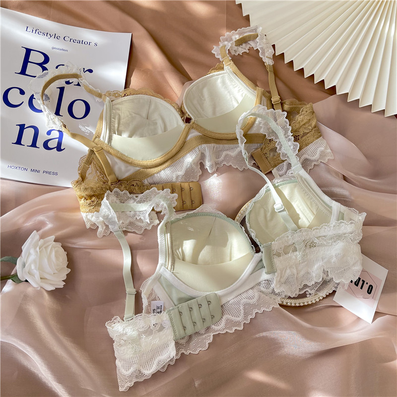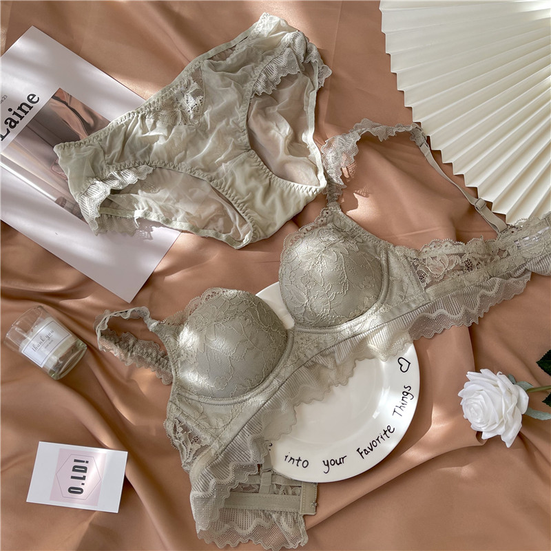 Silk modal underwear no steel ring lace shoulder straps small chest gather thin section breast adjustment underwear set