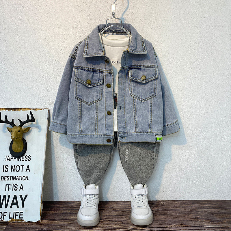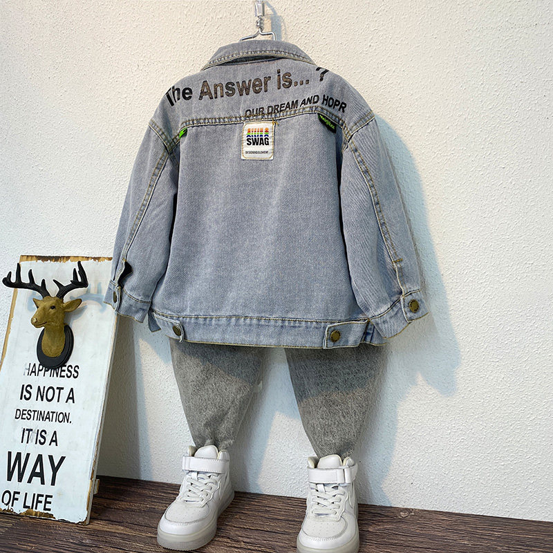 2022 new spring clothing children's clothing boys denim jacket children's tops tide boy Korean version of the baby's Western style jacket spring and autumn