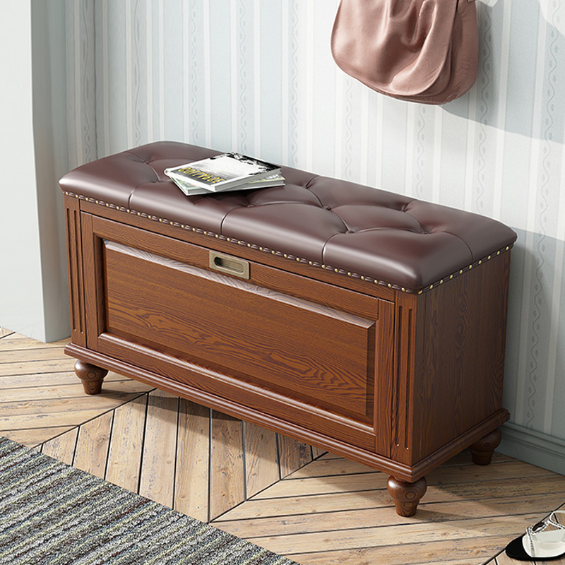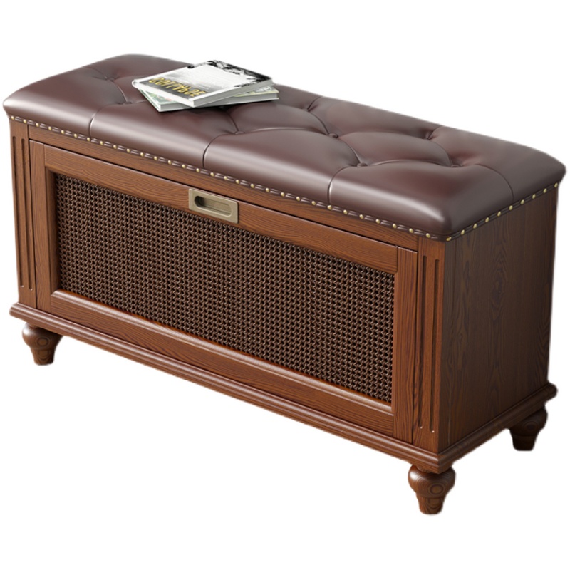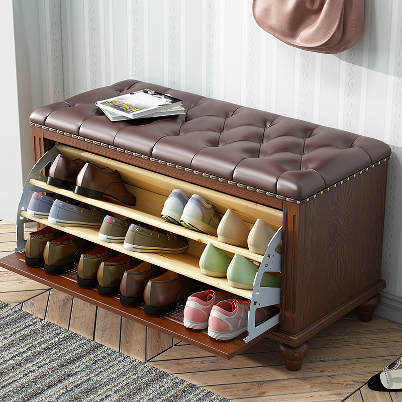 American solid wood changing shoes stool door hall Home Overturning Shoes Cabinet Wear and stool Euro style can sit soft bag genuine leather bench