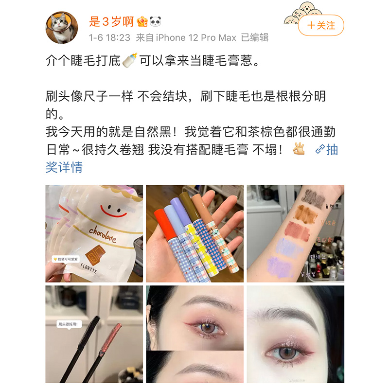 GIVE MASCARA ~ FLORTTE FLOWER LOALIA COLORFUL EYELASHES TO BASE CREAM BROWN BLUE WATERPROOF FIBER LONG WITHOUT FAINTING