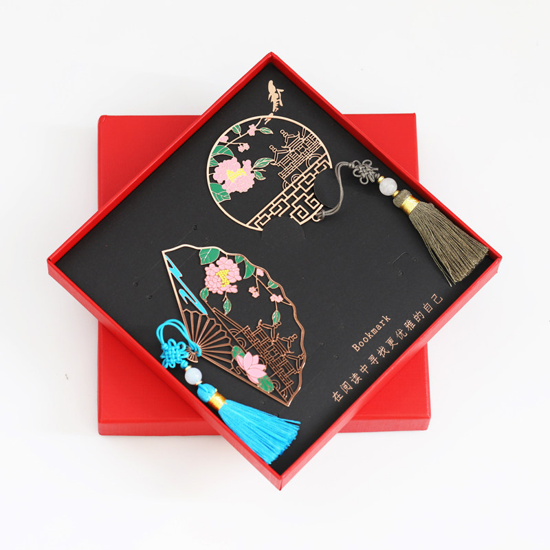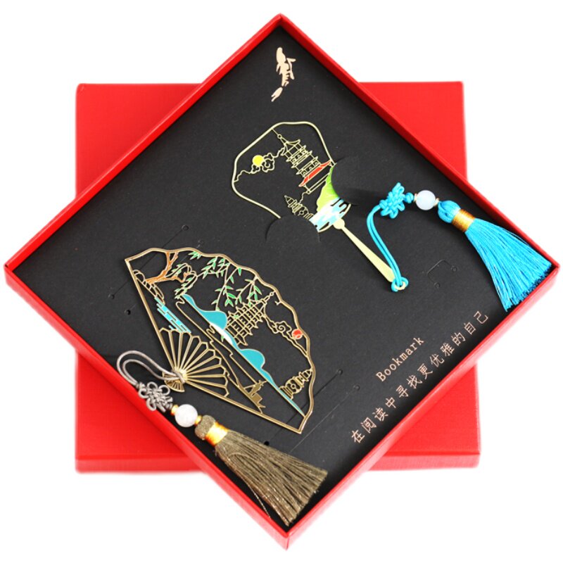 Metal Chinese style folding fan Li Renxing simple gift Hollow Chinese style bookmark Student small fresh literary gift