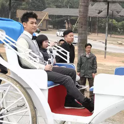 Deposit European-style sightseeing carriage simple double-row leather seats electric horse-drawn double-use princess retro carriage